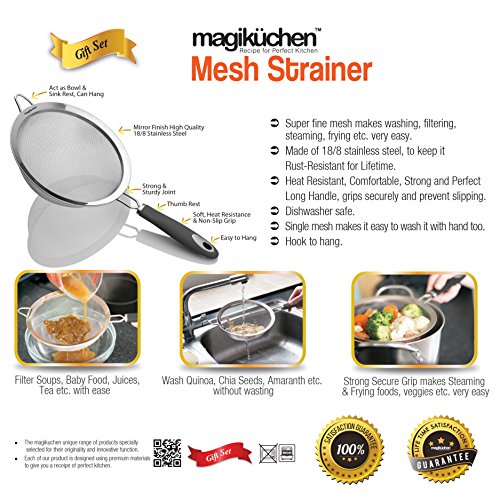 Magikuchen Scolapasta a maglia fine in acciaio inossidabile setaccio / colino 8 "con lunghe e maniglia termoresistente facile per filtrare Quinoa e molto altro ancora!