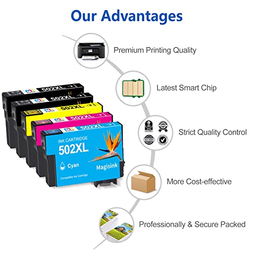 Magisink 502 XL Cartuccia d'inchiostro compatibile per Epson 502 502XL Multipack per Epson Expression Home XP-5100 XP-5105 Workforce WF-2860DWF WF-2865DWF (2 nero, 1 ciano, 1 magenta, 1 giallo)