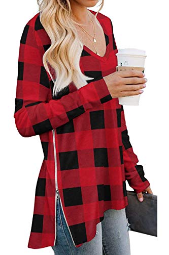Maglia Asimmetrica Donna Manica Lunga Pullover con Cerniera e Spacchetti Blusa Scollo a V Tunica Scozzese Camicia Camouflage T Shirt Leopardata Maglietta Serpentata Felpa Senza Cappuccio Camicetta Top