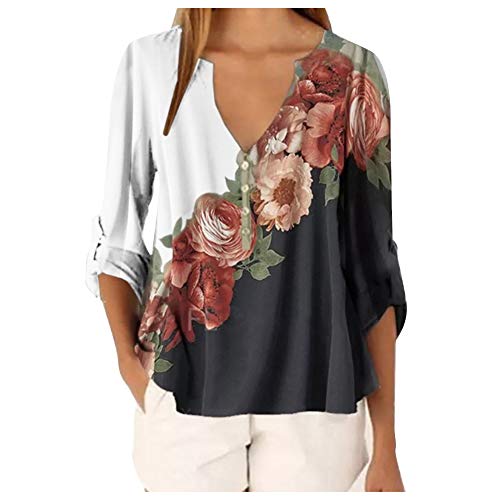 Maglia Bottoni Davanti Donna Camicia Floreale Manica Lunga Felpa Bicolore Senza Cappuccio Blusa Georgette Camicetta Chiffon Casual T Shirt Fiori Pullover Scollo V Moda Tunica Top Maglietta Patchwork
