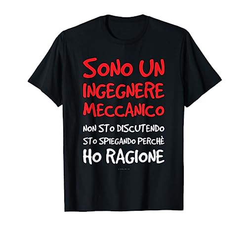 Frase Tee Shirt: Sono un ingegnere meccanico non sto discutendo sto spiegando perchè ho ragione. Magliette con scritte divertenti e frasi originali, ironiche e simpatiche. Maglie per uomo e donna, ragazzo e ragazza, bambino e bambina. Marca LUMOMIX.