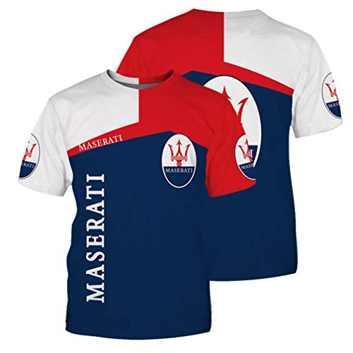 Maglia Manica Corta Girocollo Estiva da Uomo Maglietta Stampata Casual in 3D con Logo Maserati Stampato Ad Asciugatura Rapida (1,XXL)
