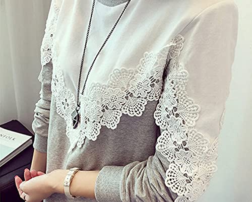 Design: di Grandi Dimensioni, Blocco di Colore Patchwork, Decorazione Del Merletto, Manica Lunga, Girocollo Pullover, Casuale Allentato Raccordo