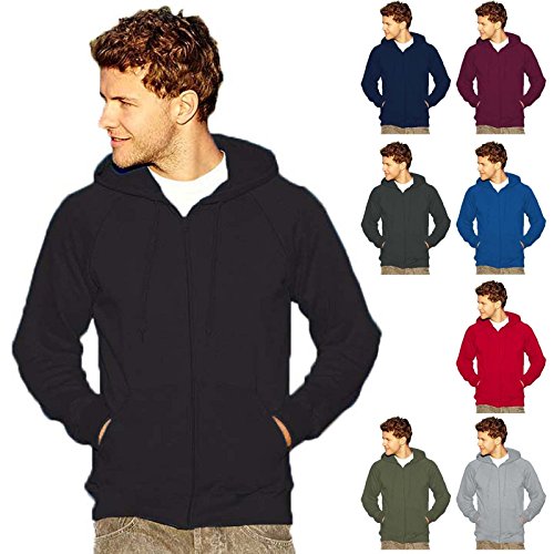 Maglia Tuta Con Cappuccio E Zip Uomo Fruit Of The Loom Felpa Leggera Cotone, Colore: Azzurro, Taglia: M