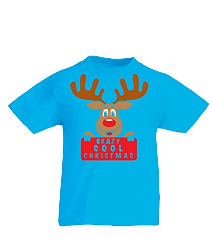 Maglietta per bambini, adatta per le feste natalizie, con motivo a renna e scritta in lingua inglese “Crazy Cool Christmas”
