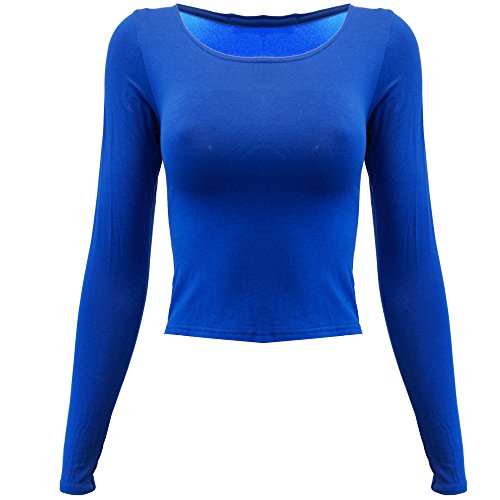 Maglietta corta da donna a maniche lunghe basic crop top girocollo mini top top corto Blu reale Small