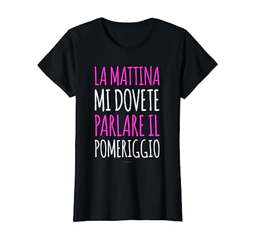 Frase Tee Shirt: La mattina mi dovete parlare il pomeriggio. Magliette a manica corta con scritte divertenti e frasi originali, ironiche e simpatiche. Magliette per donna e ragazza. Marca LUMOMIX.