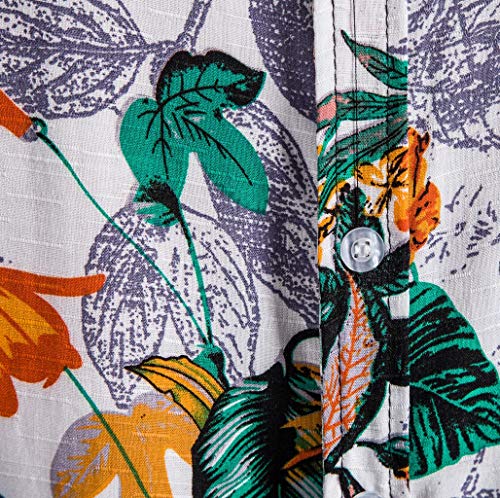 Maglietta etnica in lino, a maniche corte, con stampa hawaiana, casual, da uomo, colore beige a quadretti, Multicolore., L