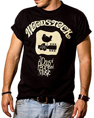 Maglietta Hippie Uomo Woodstock T-Shirt Musica Rock Nera XL