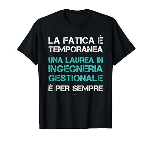 Frase Tee Shirt: La fatica è temporanea una laurea in ingegneria gestionale é per sempre. Magliette con scritte divertenti e frasi originali, ironiche e simpatiche sulla laurea. Magliette per uomo e ragazzo.