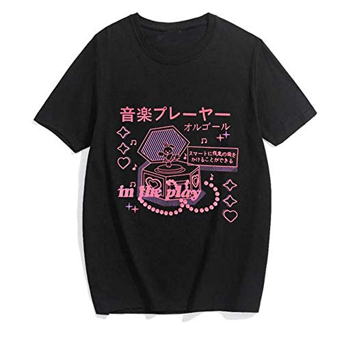 MA Maglietta Oversize Allentata Anime Stampa dei Cartoni Animati Stampa Manica Corta Donne Black Streetwear Vintage Abbigliamento Tops-Nero_L.