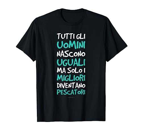 Frase Tee Shirt: Tutti gli uomini nascono uguali ma solo i migliori diventano pescatori. Maglie per il pescatore con scritte divertenti e frasi originali, ironiche e simpatiche sulla pesca. Maglie per uomo, ragazzo e bambino.