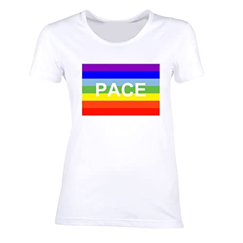 Maglietta t-Shirt Donna Ragazza Bandiera della Pace Peace No War No alla Guerra (M Donna, Bianco)