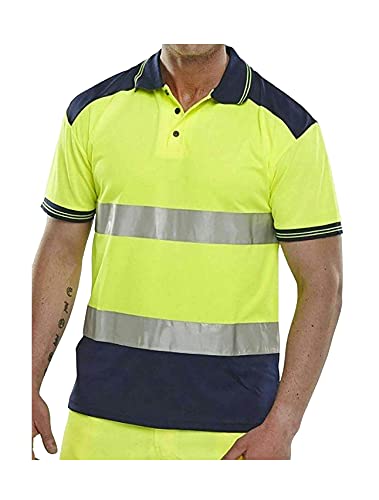 Maglietta da uomo a contrasto Hi Vis 2 tono bicolore nastro riflettente abbigliamento da lavoro Tees alta visibilità, Giallo/blu navy., L