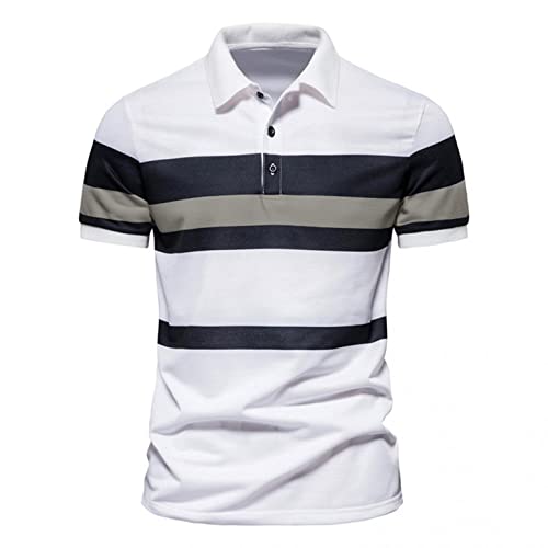Maglietta da uomo COOFANIN Patchwork a righe Manica corta Turn Down Collare 1/4 Button Down Polo Slim Fit Estate Leggero Traspirante Vestibilità regolare Casual Basic Nonno Top Camicie, Nero, 3XL