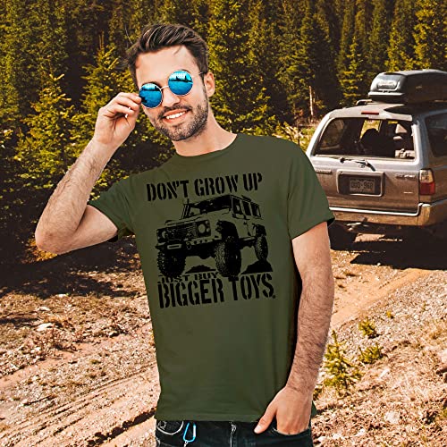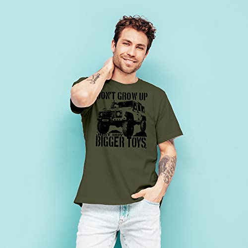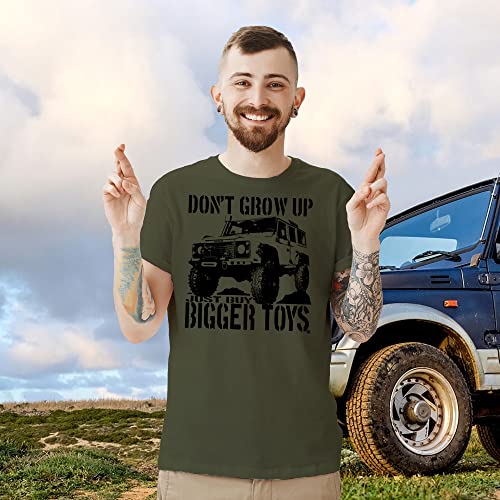 Maglietta da uomo, con stampa di un fuoristrada 4WD 4x4 e scritta in lingua inglese "Buy bigger toys" Military Green X-Large