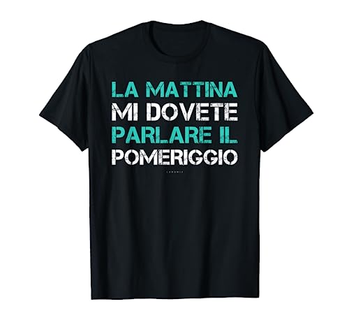 Frase Tee Shirt: La mattina mi dovete parlare il pomeriggio. Magliette a manica corta con scritte divertenti e frasi originali, ironiche e simpatiche. Magliette per uomo e ragazzo. Marca LUMOMIX.