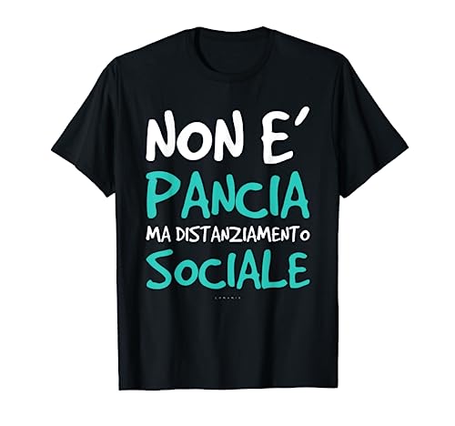 Frase Tee Shirt: Non e' pancia ma distanziamento sociale. Magliette a manica corta con scritte divertenti e frasi originali, ironiche e simpatiche. Magliette per uomo e ragazzo. Marca LUMOMIX.