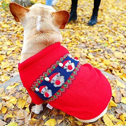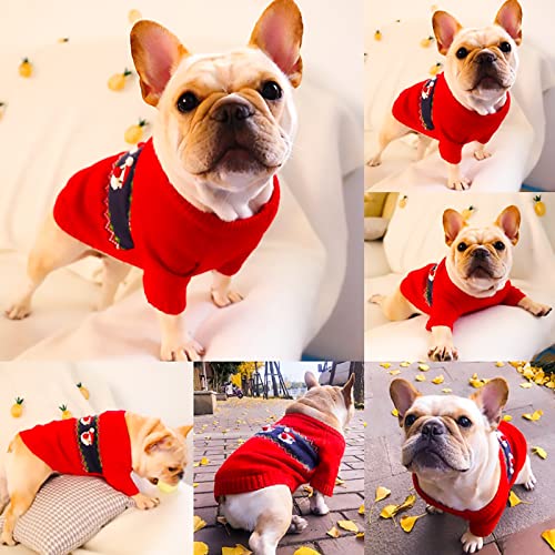 Maglioncino Cane di Natale Natalizio Bulldog Francese Vestiti Maglia Caldo Autunno Inverno Cappotto Tute Maglieria per Cane Gilet Camicia Rosso Regalo di Natale,S