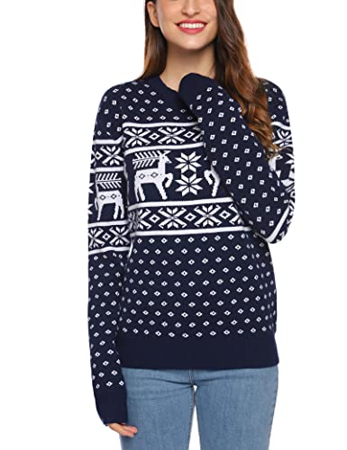 NB Maglione di Natale Maglioni Natalizio Famiglia Girocollo Pullover in Maglieria Natalizi Felpa Maglioni Sweatshirt Christmas Jumper Blu Navy-Donna S