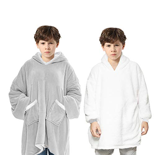 Maglione oversize Felpa con cappuccio Sherpa Felpa con cappuccio oversize Coperta indossabile calda super morbida con due tasche Maglione in pile per uomo Donna Adulti bambini Adolescente