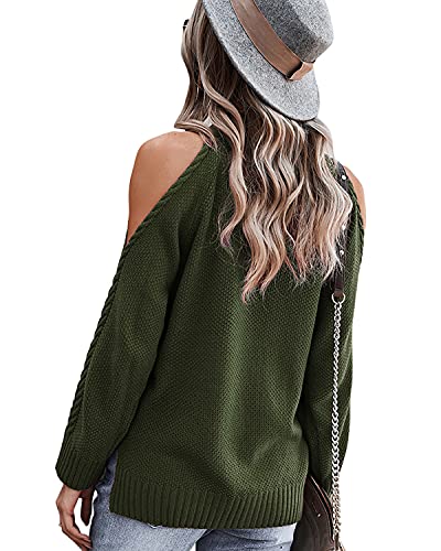 Maglione Spalle Scoperte Donna Maglioni Donna Invernali Pullover Maglioncino Maglieria Maglioncini Donna Knit Sweater Maglione Trecce Elegante Intrecciato Donna Jumper Sweaters for Women Verde S