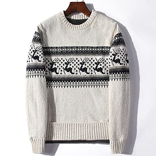 Maglione Da Uomo Lavorato A Maglia O Neck Pullover - Winter Thick Fleece Jacquard Cervi Maglioni Natalizi, Plus Size Giacca In Maglia Per Uomo Liner E Abbigliamento Esterno Abbigliamento,White,Xx,La