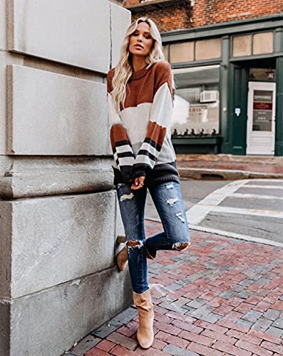 Caratteristica: il maglione pesante a maniche lunghe da donna con motivo a blocchi di colore e colletto girocollo, è davvero chic e caldo. Questo maglione pullover in maglia presenta ampie strisce colorate