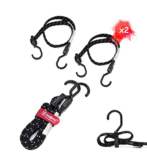 MAGMA 2 Corda Elastica Piatta con Ganci | Corda Extra Forte e Resistente per Campeggio, Fissaggio e per Assicurare Bagaglio, Portapacchi, Teloni, Bicicletta, Barca e Auto | Riflettenti, Nero