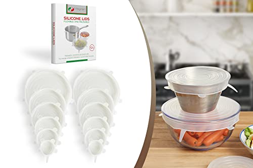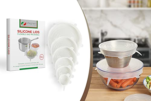 MAGNANI Coperchi Elastici in Silicone, Tappi in Silicone per Contenitori 12 Pezzi, Coperchi in Silicone Estensibile, Coperchi Universali per Alimenti