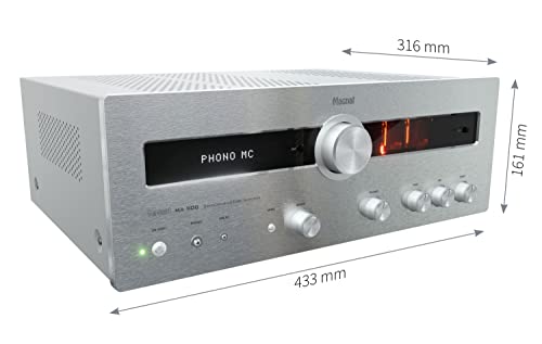 Magnat MA 900, robusto amplificatore stereo ibrido con parte frontale in alluminio di alta qualità e alta potenza in uscita per un suono stereo perfetto