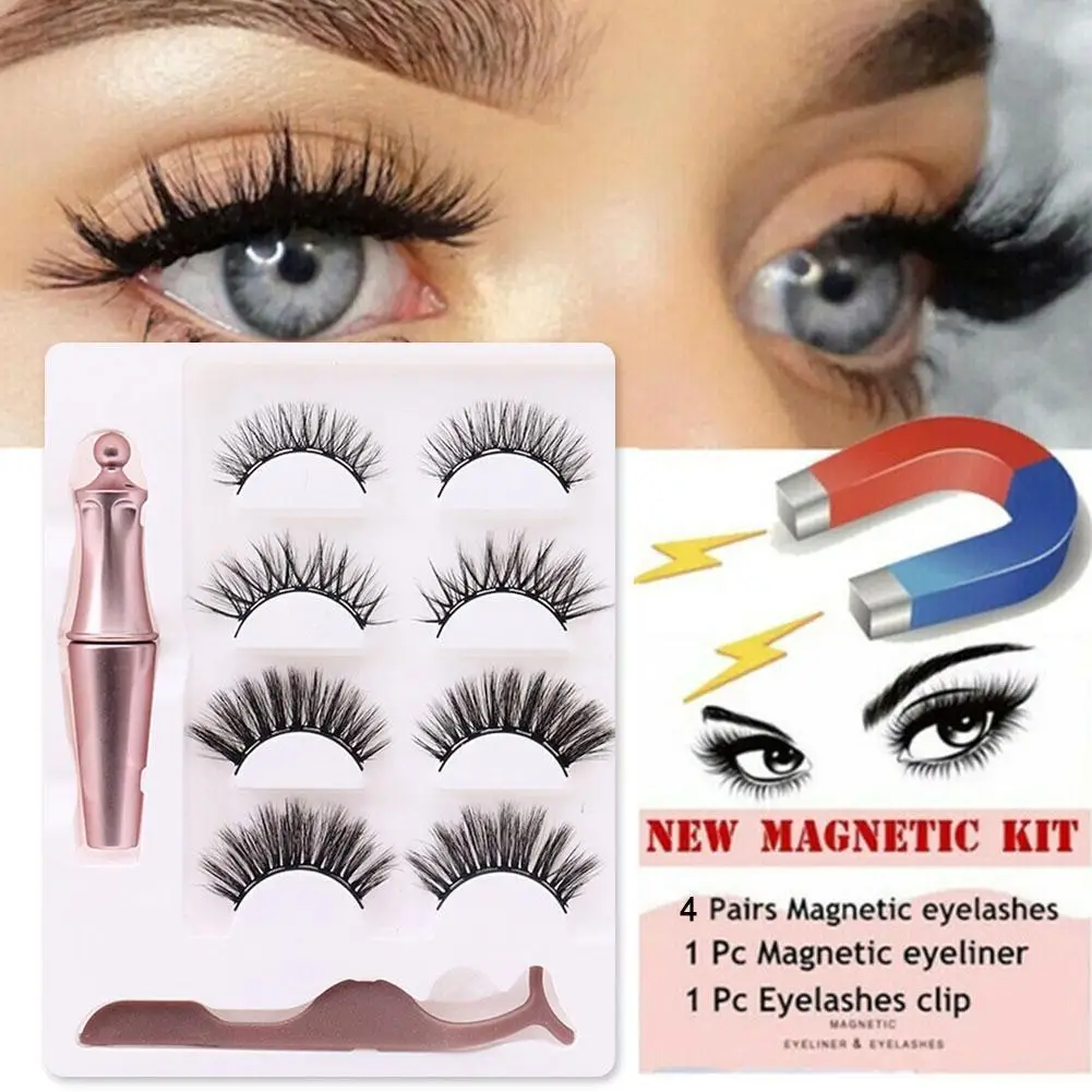Magnet False Eyelashes Four Pairs Self Adhesive Eyeliner Set Thick Magnetic Eyelashes Set Magnetic Eyeliner
