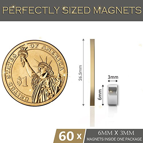 Magnete al neodimio Disco in magnete al neodimio 6 x 3 mm super forte adatto a usare a parete (60 pezzi)