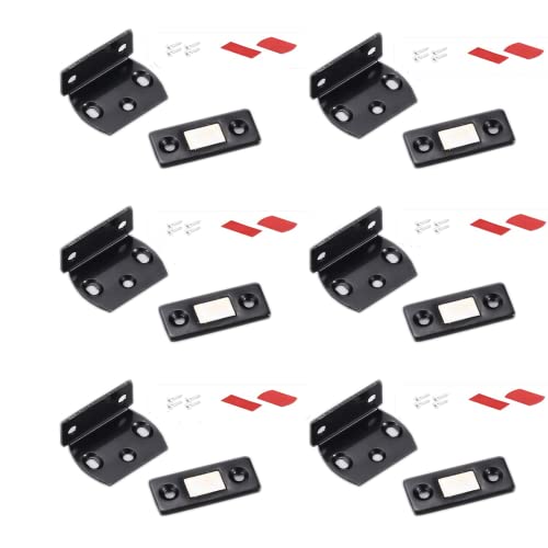 Magnete per porta a forma di L Confezione da 6 magneti per porta per ante dell'armadio Serrature magnetiche per mobili ultrasottili Serratura magnetica potente(Nero a forma di L)