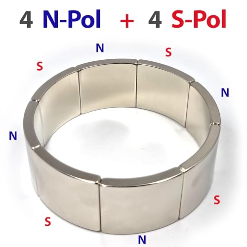 25 mm di altezza e 4 mm di spessore, con un raggio esterno di 37,5 mm e un raggio interno di 33,5 mm - Per formare un anello a 360° a 8 pin sono necessari quattro di questi magneti dell'arco sud e quattro della versione nord