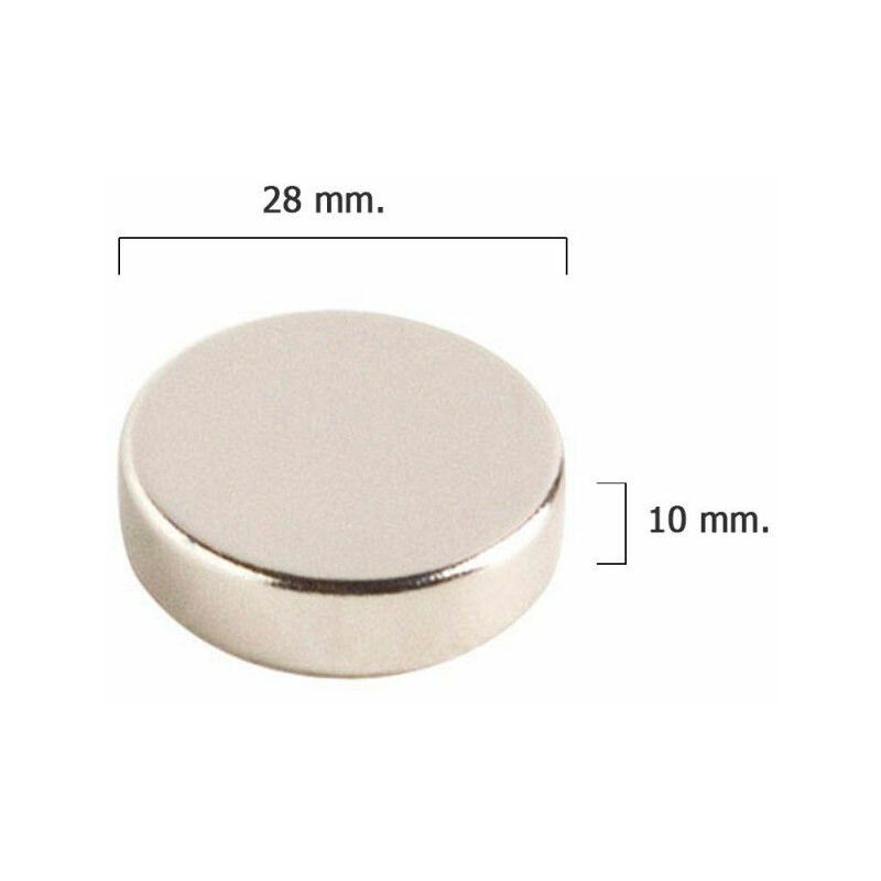 Magnete magnetico Wolfpack - Neodimio rotondo. - Misure: 28x10mm - Blister 1 pezzo. - Uso strettamente domestico. - Non adatto per uso professionale. -/>- Non adatto per il fissaggio del carico.