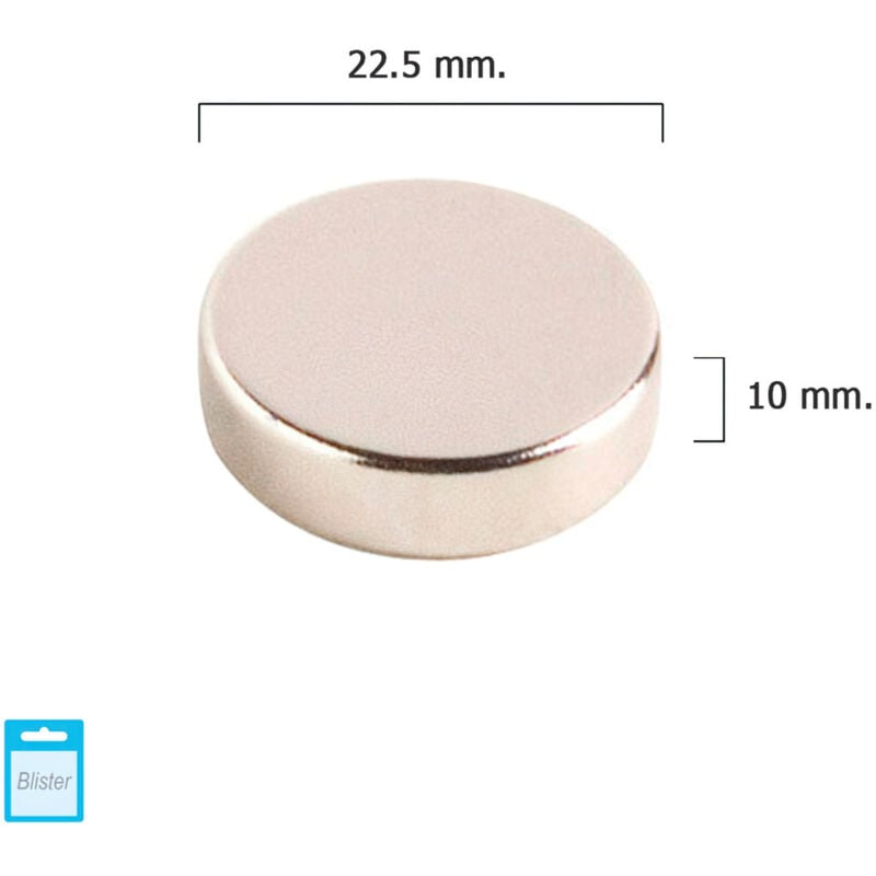 Magnete magnetico Wolfpack - Neodimio rotondo. - Misura 22,5x10mm. - Blister 1 pezzo. - Uso strettamente domestico. - Non adatto per uso professionale. - Non adatto per il fissaggio del carico.