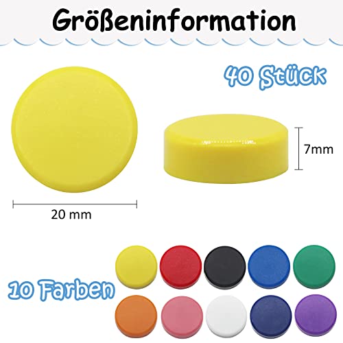 40 magneti colorati rotondi, 10 colori per lavagnetta magnetica, calamite da frigorifero, calamite decorative per lavagna, frigorifero, aula, ufficio, armadietti