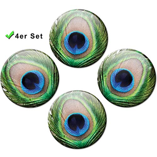 Set di 4 magneti per frigorifero, motivo: pavone, con occhi di pavone, blu, per lavagnetta magnetica per bambini, misura grande, diametro 50 mm