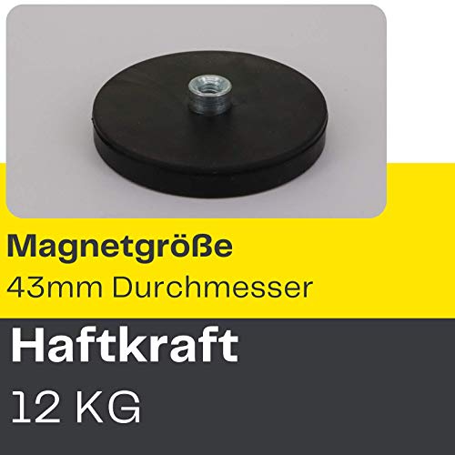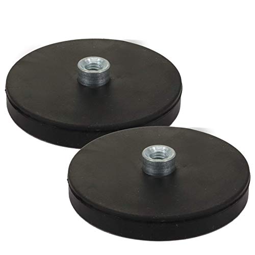 2 magneti al neodimio gommati Ø 43 mm con filettatura interna M4 15 kg forza di trazione piatta disco magnetico magnetico in gomma magneti rotondi con filettatura per viti occhiello o ganci