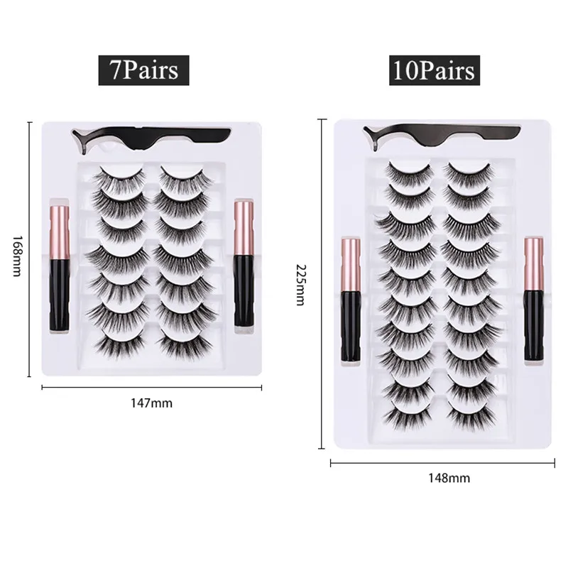 Magnetic eyelash eyeliner set, 3/5/7/10 pairs 3d eyelashes natural and durable waterproof false eyelash makeup