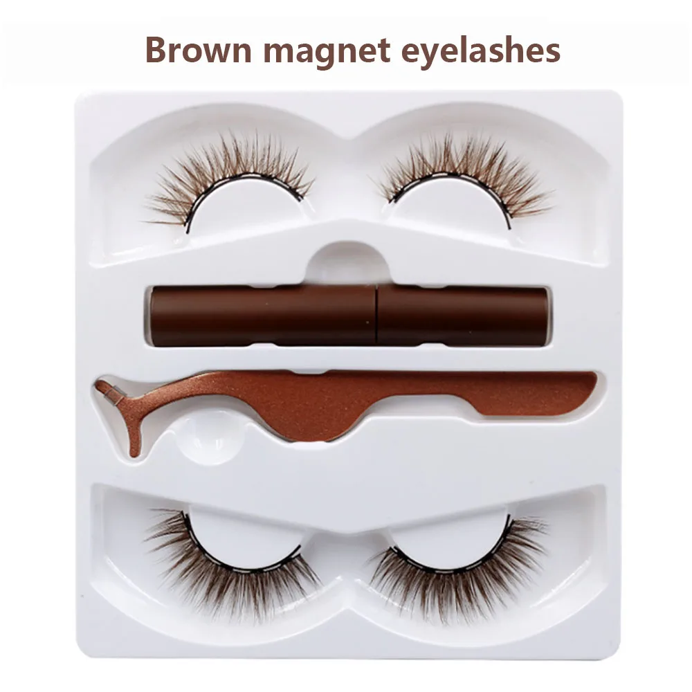 Magnetic Eyelashes 1/2Pairs 3D Magnet Eyeliner Natural False Lashes Waterproof Long Lasting Brown Eyelash Extension Makeup Tools