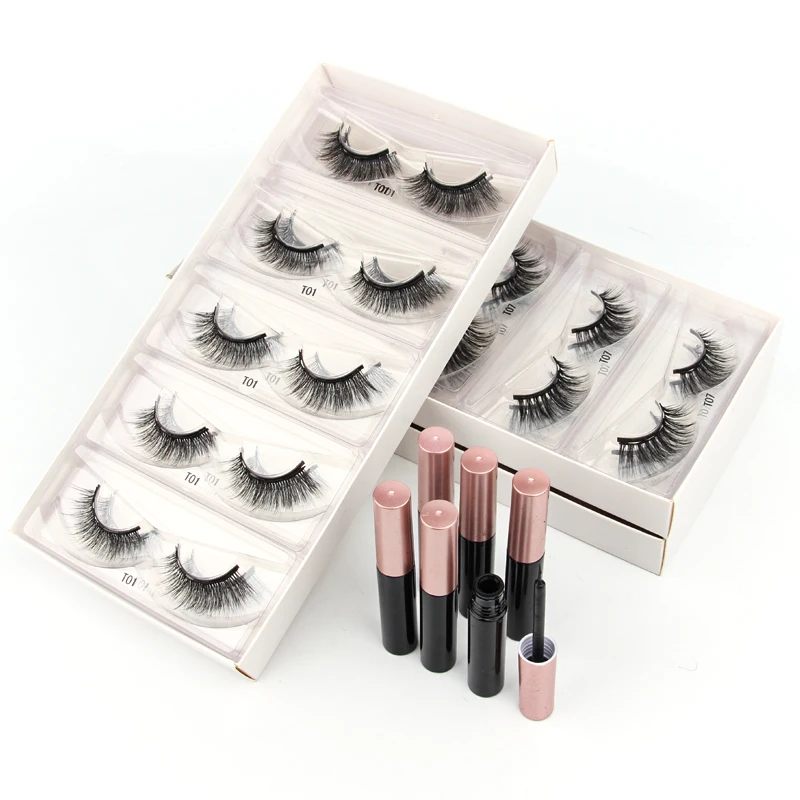 Magnetic Eyelashes 3/20/100pcs Wholesale 3D Natural Soft Mink Eye Lashes Waterproof Liquid Eyeliner faux cils magnetic lashes