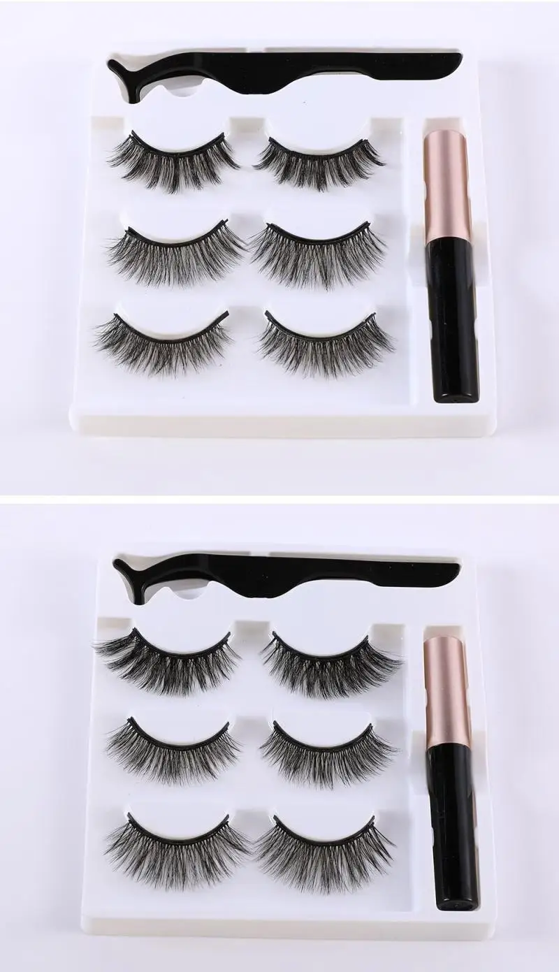 Magnetic Eyelashs set 3 Pairs Magnet Liquid Eyeliner& Magnetic Lashes & Tweezer Set Waterproof Long Lasting Eyelash Handmade