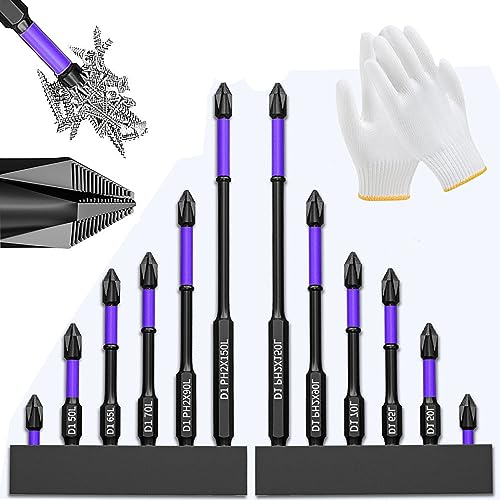 2 Set Bit magnetico ad alta durezza e forte, punte avvitatore magnetiche antiscivolo, set di punte per cacciavite a percussione, magnetic screwdriver bit set (2 Set / 12 Pezzi)