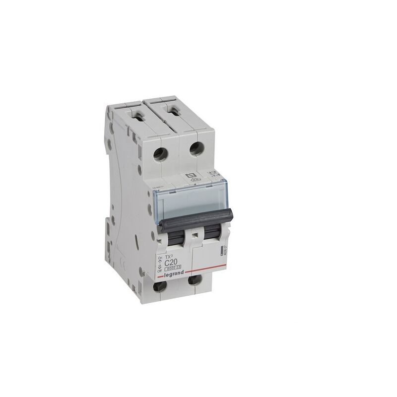 Magnetotermico TX3 6KA-C 2 poli 20A. Interruttore automatico magnetotermico TX³ Bipolare 230/400 V~ - Curva C - Corrente nominale: 20A - Numero di moduli: 2. Magnetotermici TX³ - interruttori automatici da 6A a 40A - curva C - Potere di interruzione 6000A - Conforme a UNE EN-60898-1 - Connessione con morsetti protetti contro i contatti diretti (IP20) - Viti non perdibili - Portaetichette incorporato - Capacità di collegamento: 25 mm² flessibile/35 mm² rigido - Possono essere equipaggiati con comandi motorizzati e ausiliari di comando e segnalazione DX³.