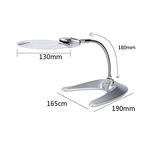 BD.Y Magnifying Glasses, Holding Magnifying Glass Desktop Magnifier with LED Light 130mm Large Mirror Crescent Hose Magnifying Glass for Elderly Reading/Maintenance