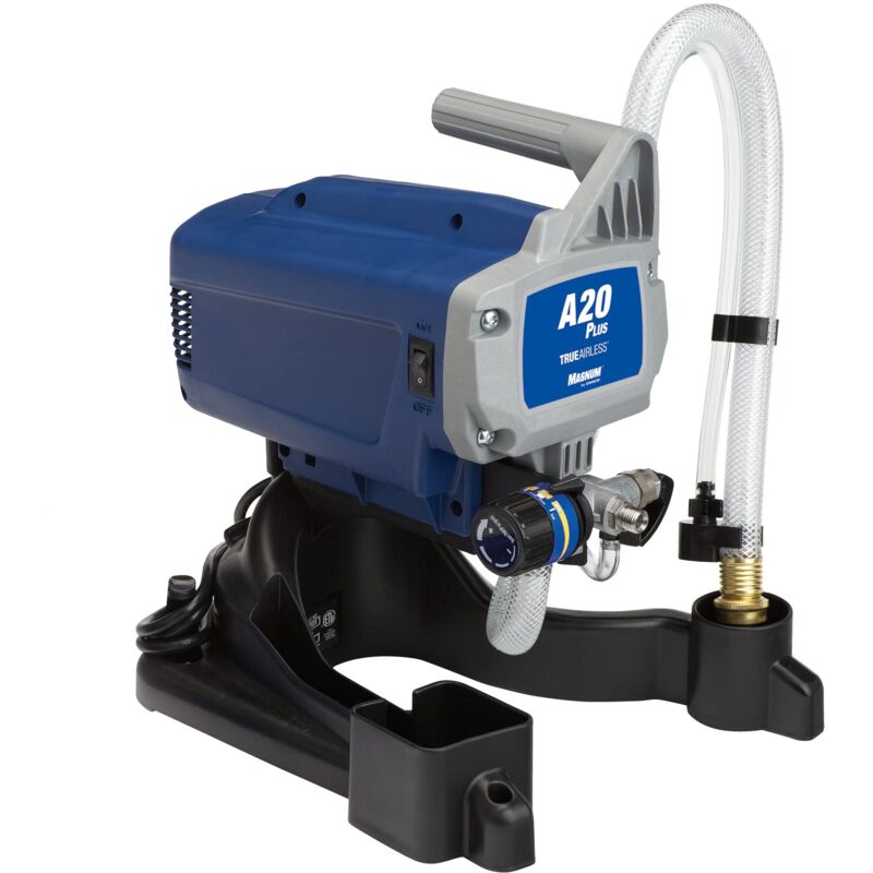 Descrizione del prodotto: Magnum A20 Plus consente ai proprietari di case amanti del fai-da-te, anche quelli che non hanno mai usato gli spruzzatori di vernice, di completare i loro lavori di verniciatura in modo rapido e semplice. Questo spruzzatore permette di gestire la maggior parte dei progetti di ristrutturazione interna ed esterna della casa e consente di spruzzare direttamente dal secchio della vernice per finire in modo più veloce e facile. Magnum A20 Plus offre risultati sorprendenti con velocità e precisione, consentendoti di completare il tuo progetto in una frazione del tempo necessario con pennelli e rulli. La resistente pompa a pistone in acciaio inossidabile eroga fino a 207 bar per spruzzare i rivestimenti più difficili non diluiti. Insieme all'ugello di spruzzatura TrueAirless con tecnologia SoftSpray, avrai un maggiore controllo e otterrai una finitura di spruzzatura più morbida, con overspray minimo e i risultati di qualità professionale che stai cercando. Magnum