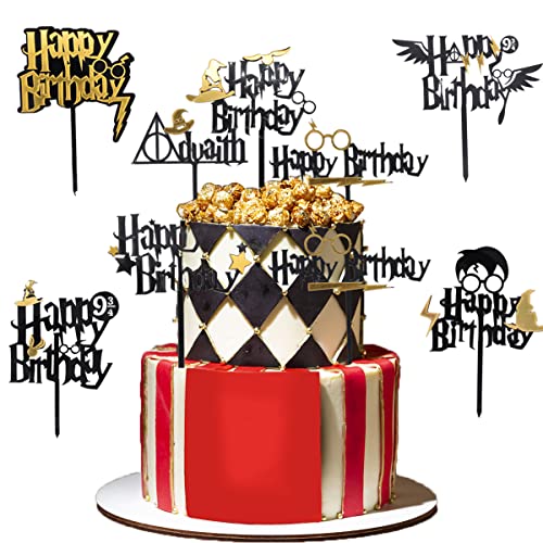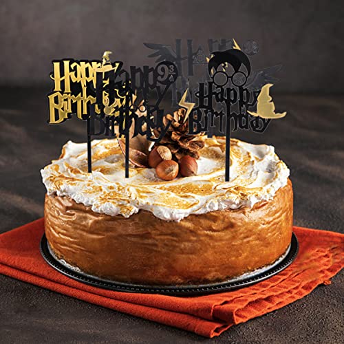 Mago Cake Topper - simyron Wizard Mago Happy Birthday Decorazione, Nero Oro Wizard compleanno Decorazione Set,Forniture per feste di compleanno dello ragazzi Toppers per torta(8Pcs)