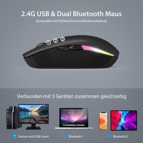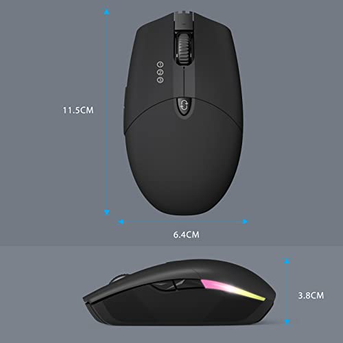MagoFeliz Mouse wireless illuminato Bluetooth + Bluetooth + 2.4 G senza fili, mouse ergonomico per computer con 4 luci LED per Windows PC, laptop/Android Tablet, Mac/iPad, cellulare, nero